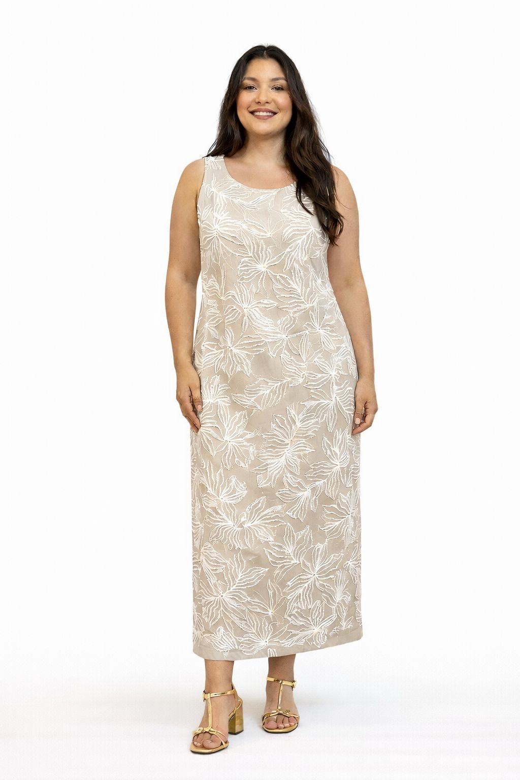 Confeccionado em tecido de linho com viscose, o vestido apresenta bordado em toda a peça, proporcionando textura, sofisticação e um visual exclusivo. É uma escolha perfeita para quem busca conforto aliado à elegância, tanto para o dia quanto para ocasiões especiais.